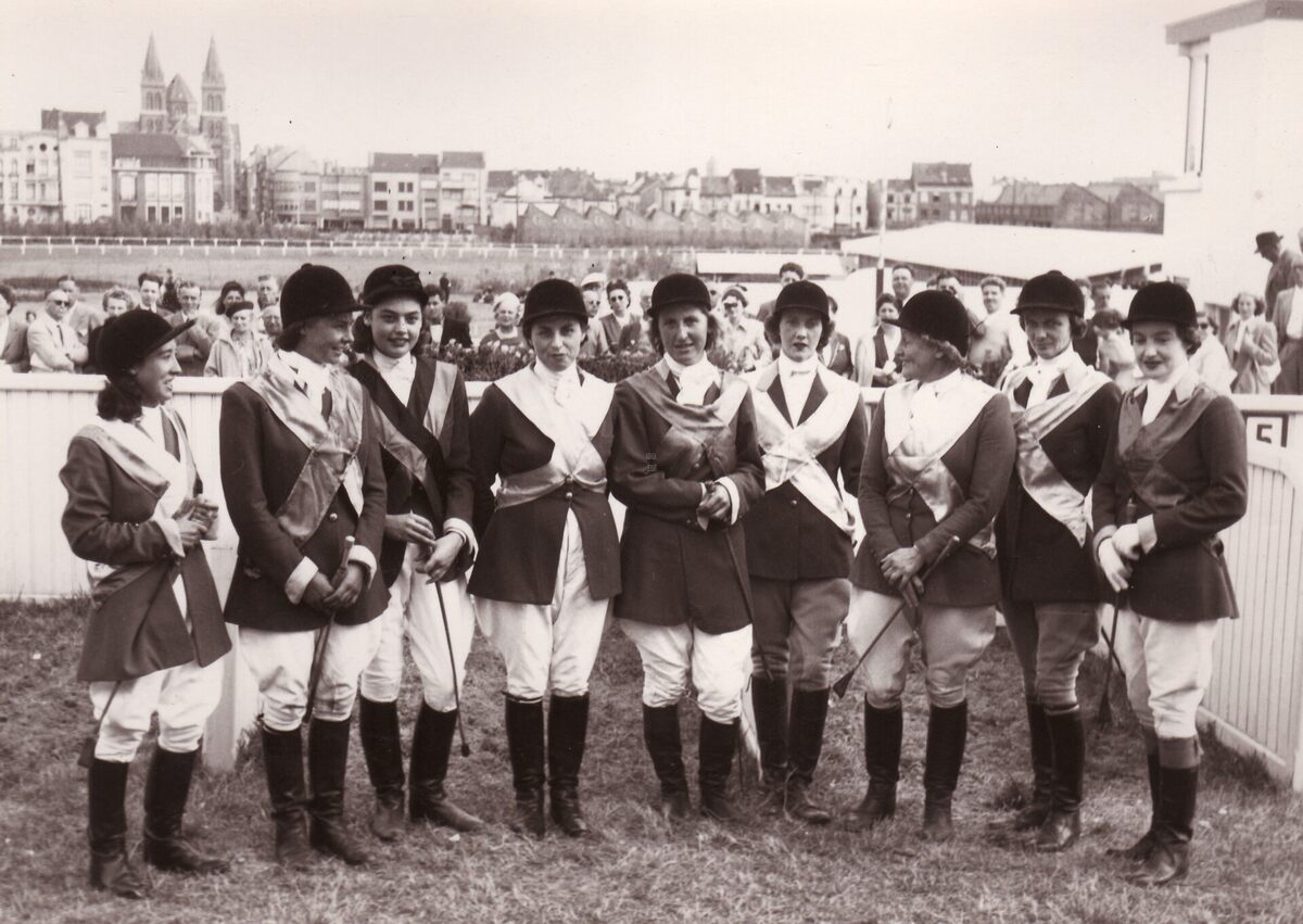 Formaat : 13 x 18 cm. - Een groep vrouwelijke jockeys.