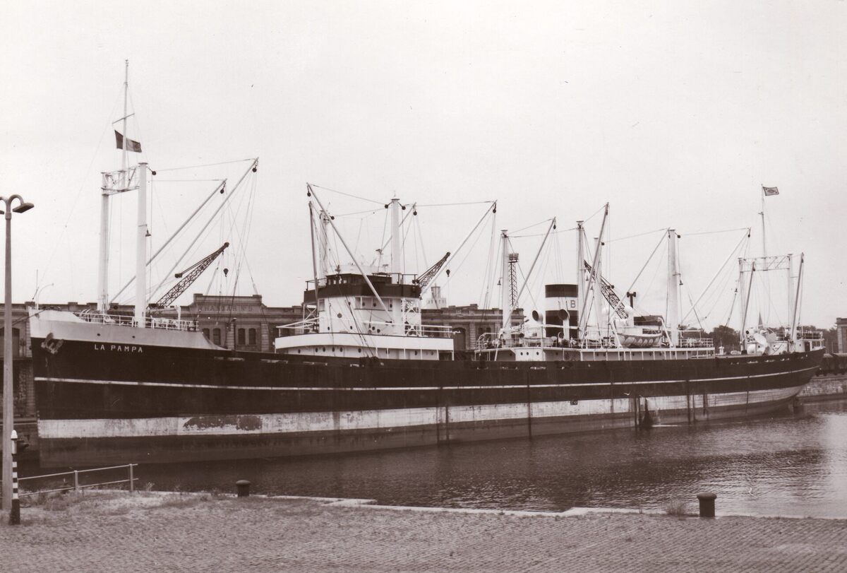 Formaat : 13 x 18 cm. - Het vrachtschip La Pampa in het Vlotdok na bij de stedelijke hangars.