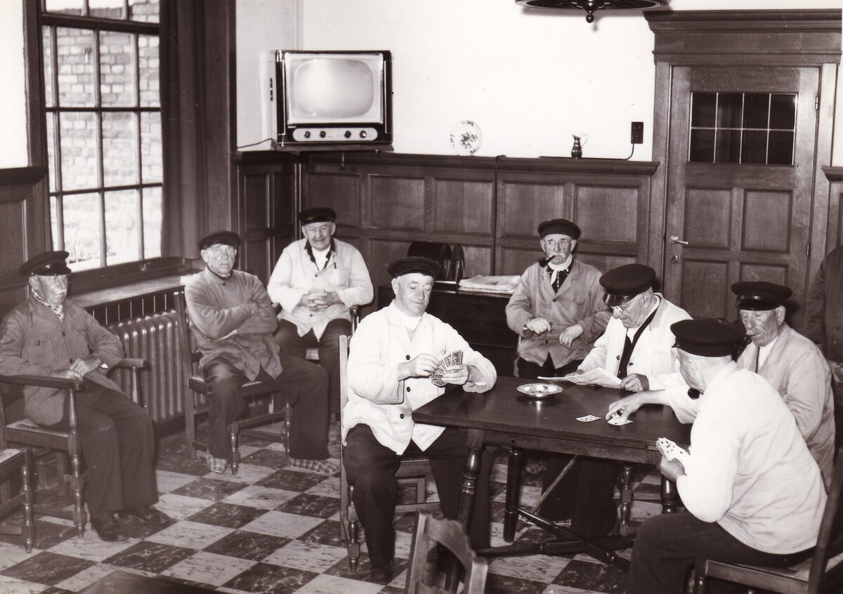 Formaat : 13 x 18 cm. - Oude vissers ontspannen zich in het Godtschalck Instituut aan de Dokter Eduard Moreauxlaan.