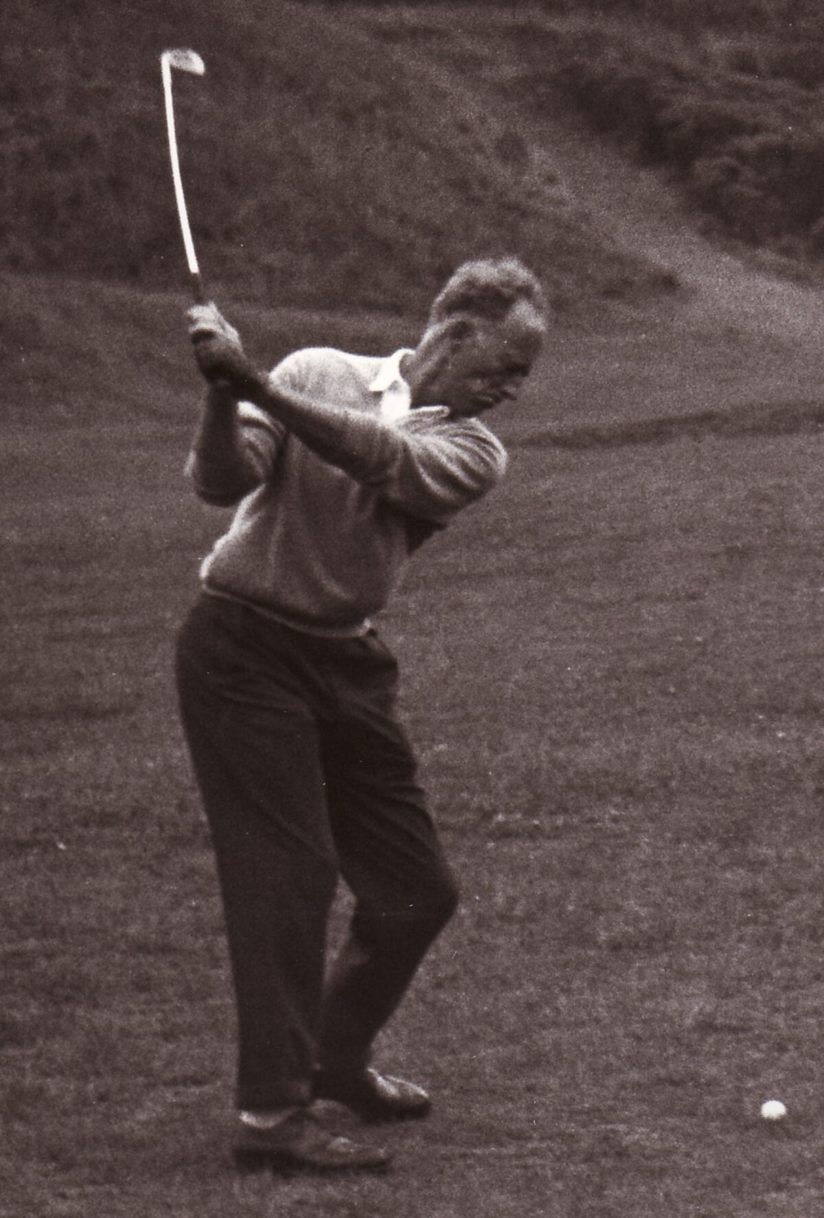 Koning Leopold oefent zijn "drive" op het golfterrein van De Haan.