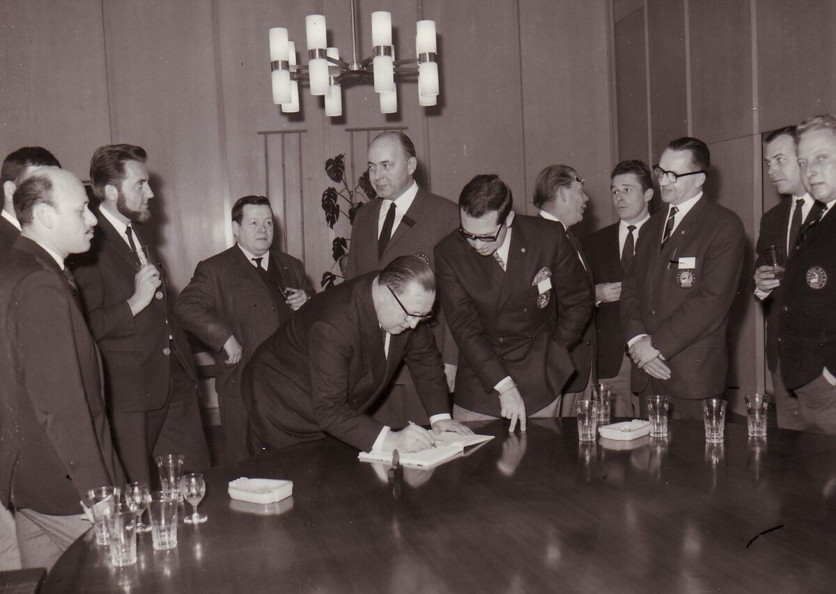Een duikersvereniging wordt ontvangen op het stadhuis.Waarnemend burgemeester John LAUWEREINS tekent hun gulden boek.(zie ook 2014/333).