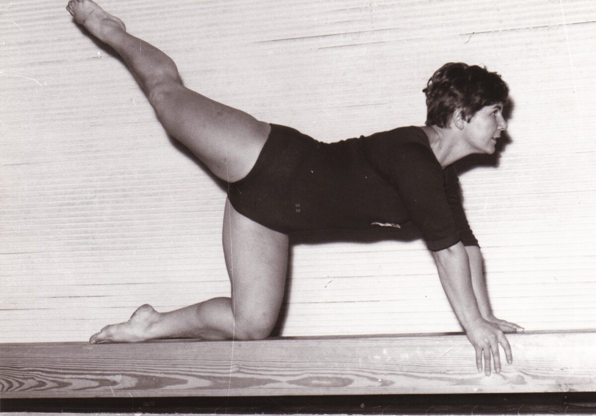 Een turnster van "Willen is Kunnen" op de evenwichtsbalk.
