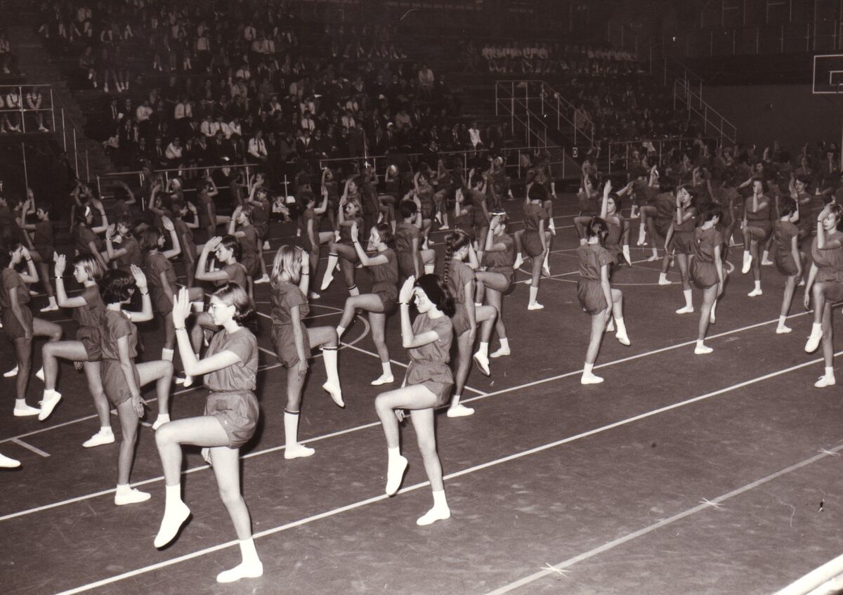 Turnfeest in het sportcentrum,de meisjes treden op;