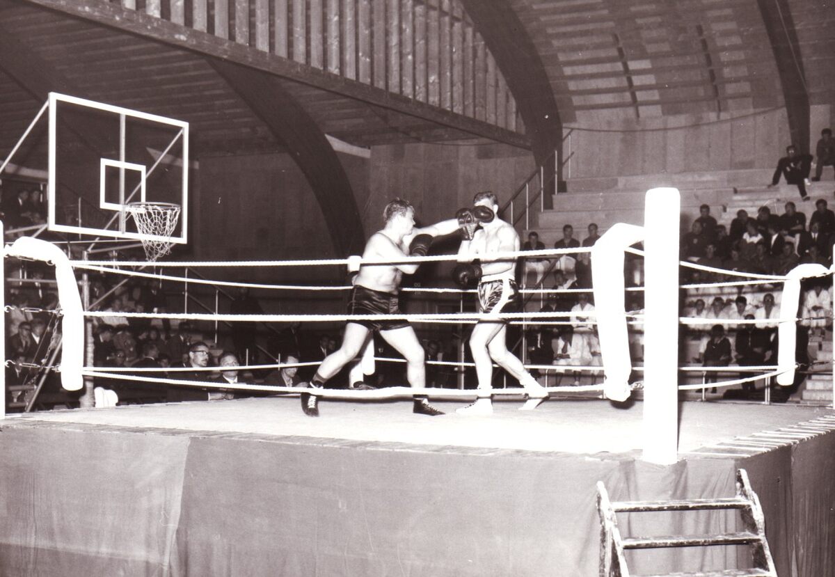 Boksmatch in het sportcentrum aan de Koninginnelaan.