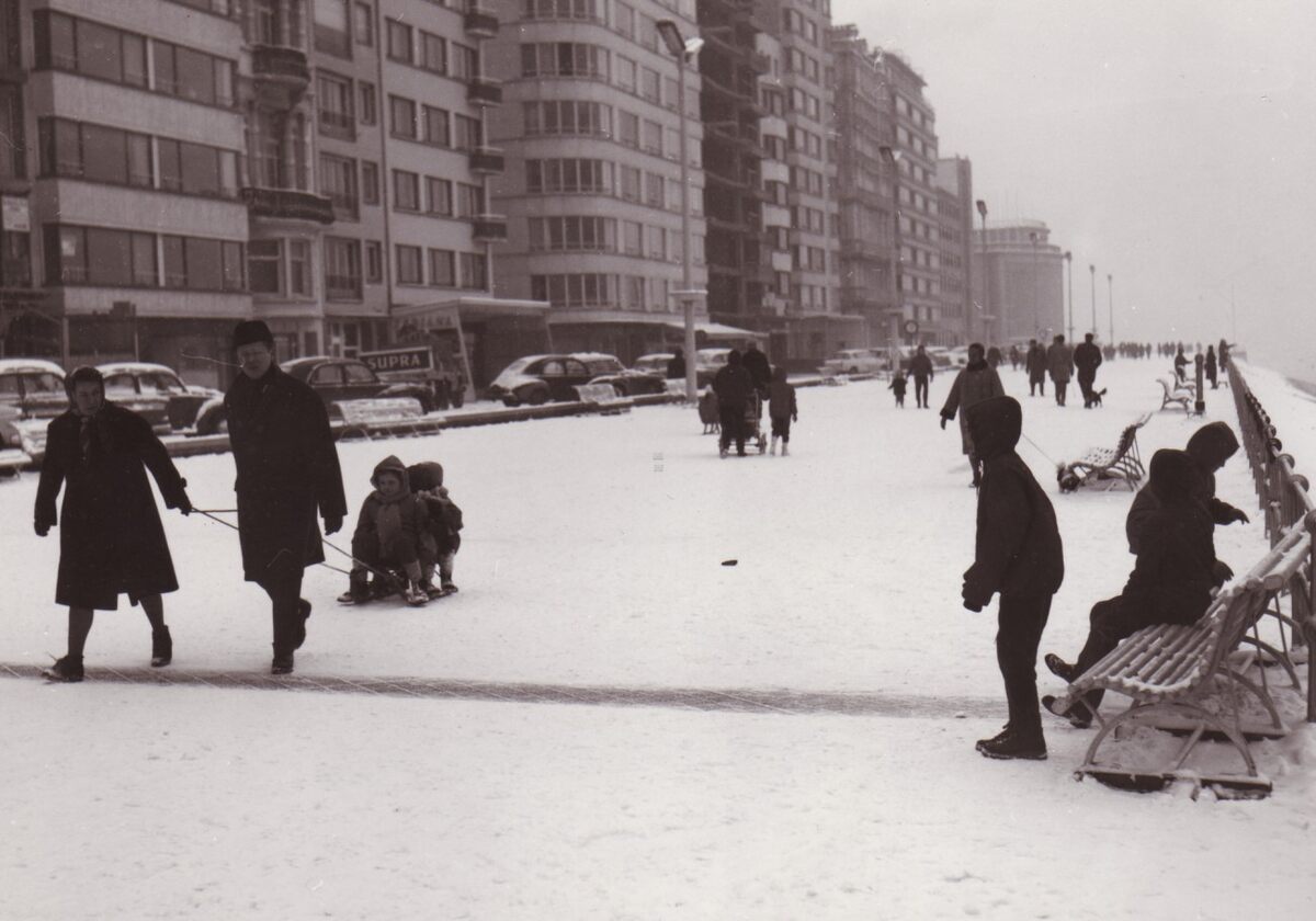 Sleetje rijden op de besneeuwde Albert I Promenade.