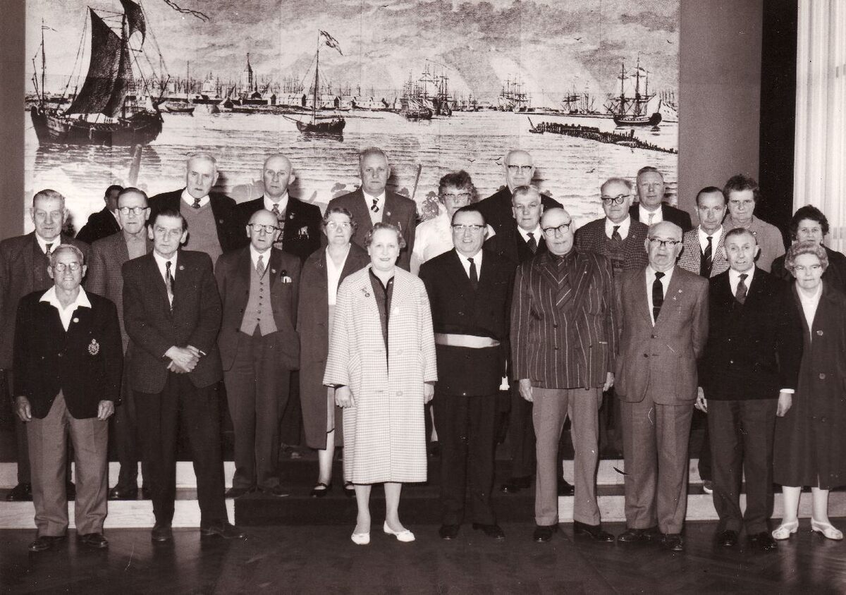 Waarnemend burgemeester John LAUWEREINS bij een ontvangst op het stadhuis. Op de achterste rij, tweede van rechts, Michel SURMONT, stadssecretaris.