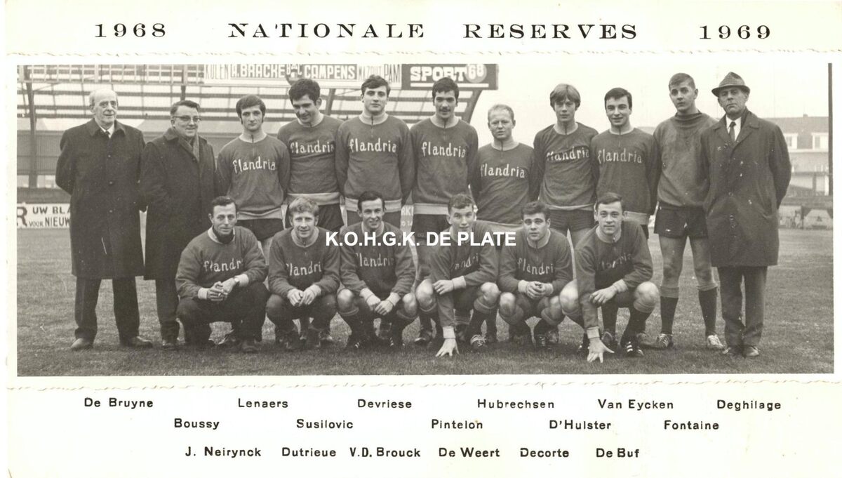 Formaat : 9 x 22 cm.- Staand v.l.n.r.: De Bruyne, Lenaers, Devriese, Hubrechsen, Van Eycken, Deghilage, Boussy, Susilovic, Pintelon, D'Hulster, Fontaine. Zittend v.l.n.r.: J. Neirynck, V.D. Brouck, De Weert, Decorte, De Buf