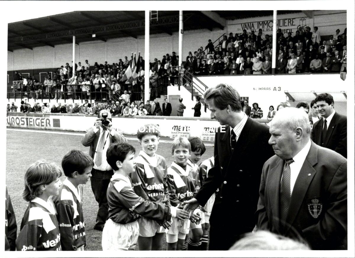 Formaat : 14 x 19 cm. - We zien prins Filip de spelers begroeten.
