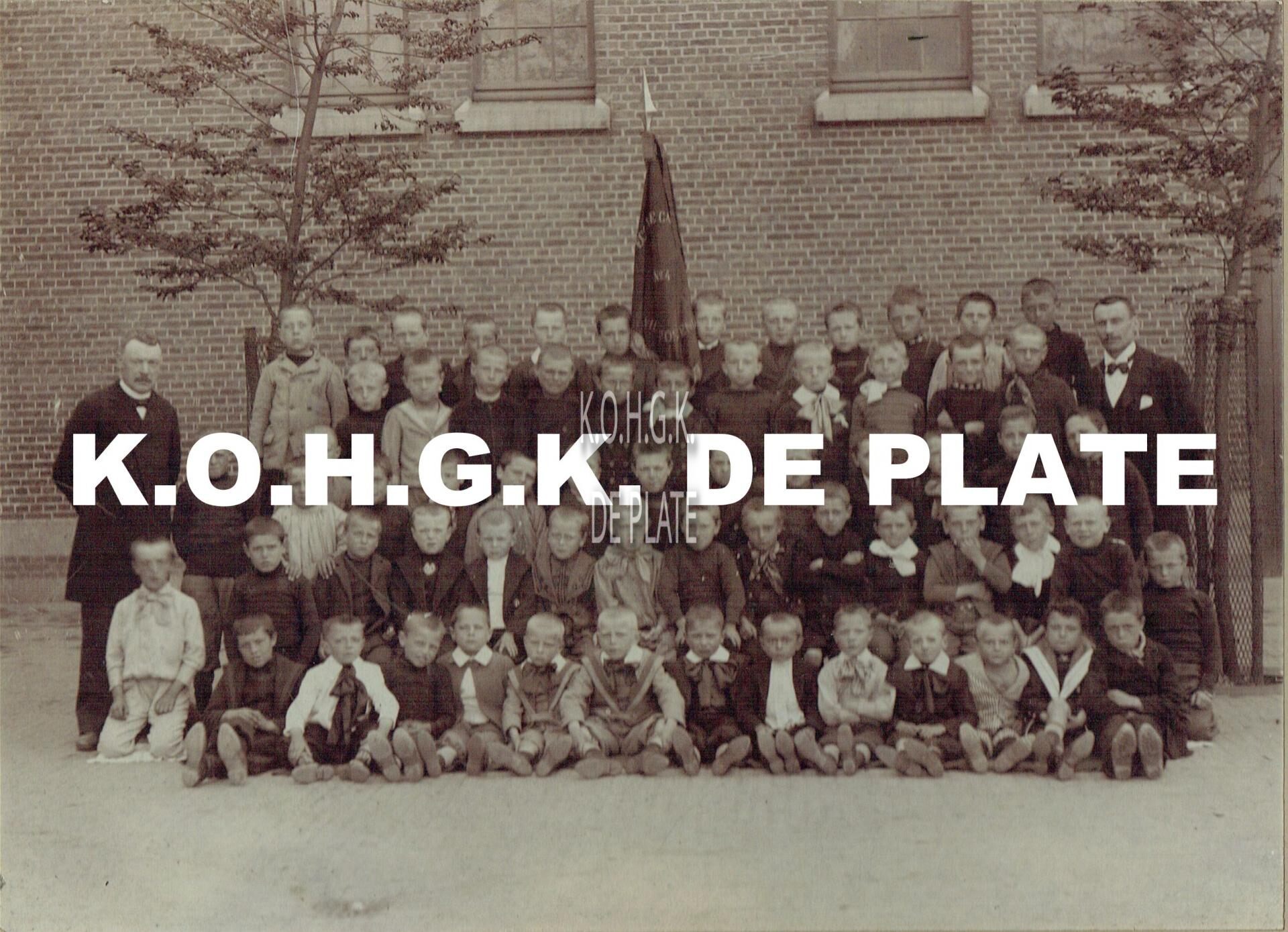 Formaat : 16 x 22 cm. - Klasfoto van een Oostendse school. Circa 1900. Een van de leerlingen is Louis Lombaert (°30/01/1892) grootvader langs moederszijde van Louis Sorel,