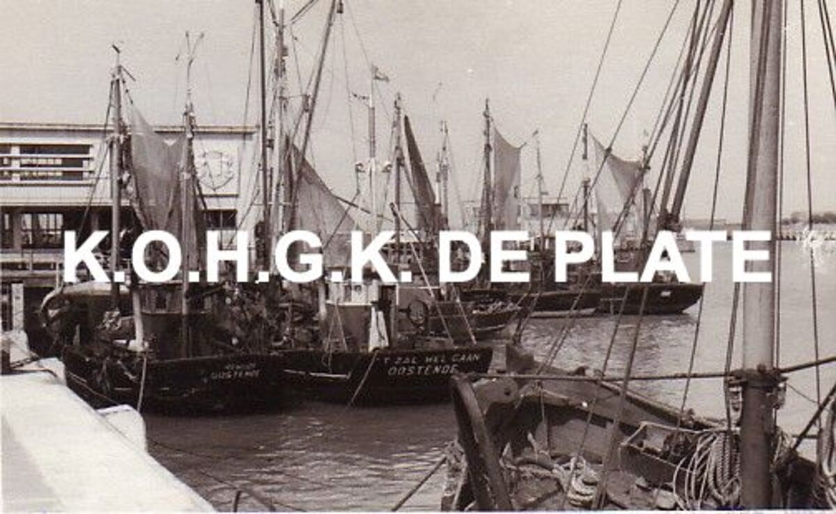 Formaat : 8 x 13 cm. - Houten vissersvaartuig O.234 "Renilde" werd met Moës motor gebouwd in 1945 als "Simonne" en veranderde in 1948 van naam. Reder: albert Desmit. - Ernaast ligt houten vissersvaartuig O.46 "'t Zal wel gaan" gebouwd in 1943 met AWA motor voor reder Richard Verburgh. In de achtergrond links de garnaalmijn