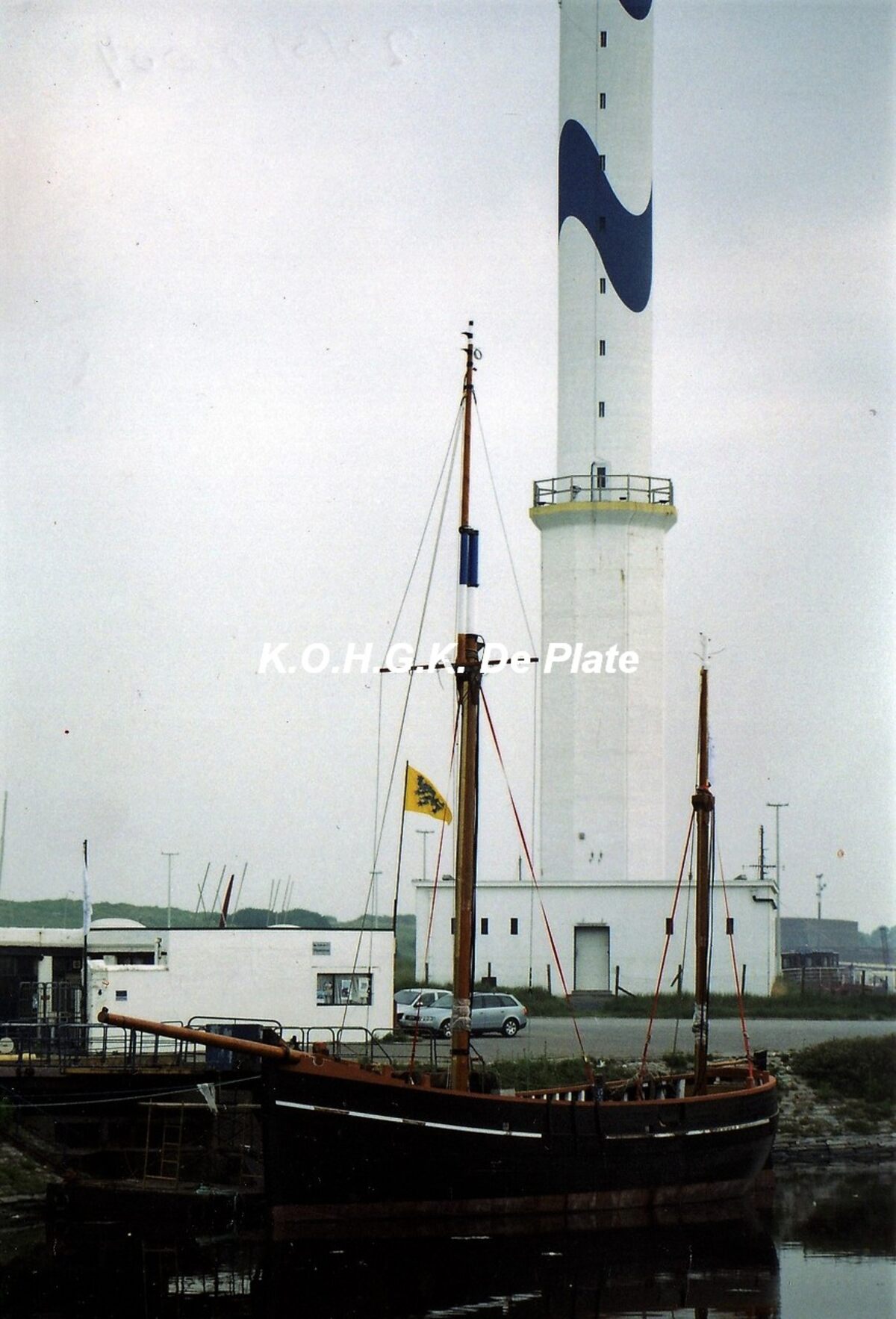 Foto : 10 x 15 cm. - Bouw van de Oostendse tweemastsloep "Nele" in het Visserijdok nabij de vierde vuurtoren "Lange Nelle"
