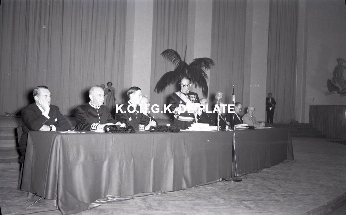 Negatief : 6 x 9 cm. - De academische zitting. Burgemeester Adolf Van Glabbeke houdt zijn toespraak.
