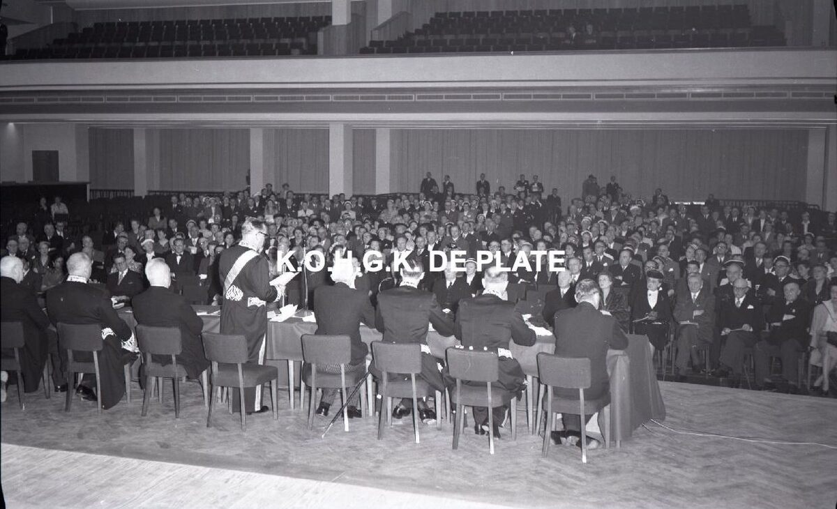 Negatief : 6 x 9 cm. - De academische zitting in de concertzaal. Burgemeester Adolf Van Glabbeke houdt zijn toespraak.