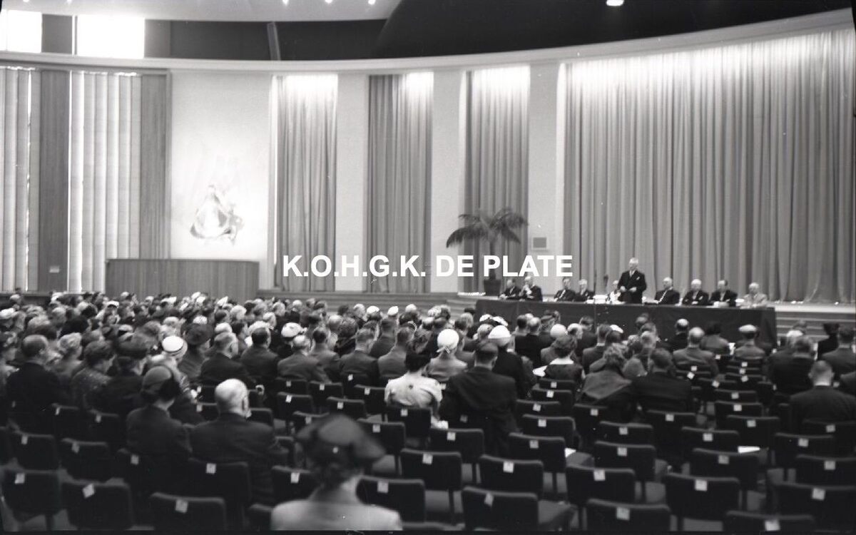 Negatief : 6 x 9 cm. - De academische zitting in de concertzaal. Schepen Emiel Vroome houdt zijn toespraak.