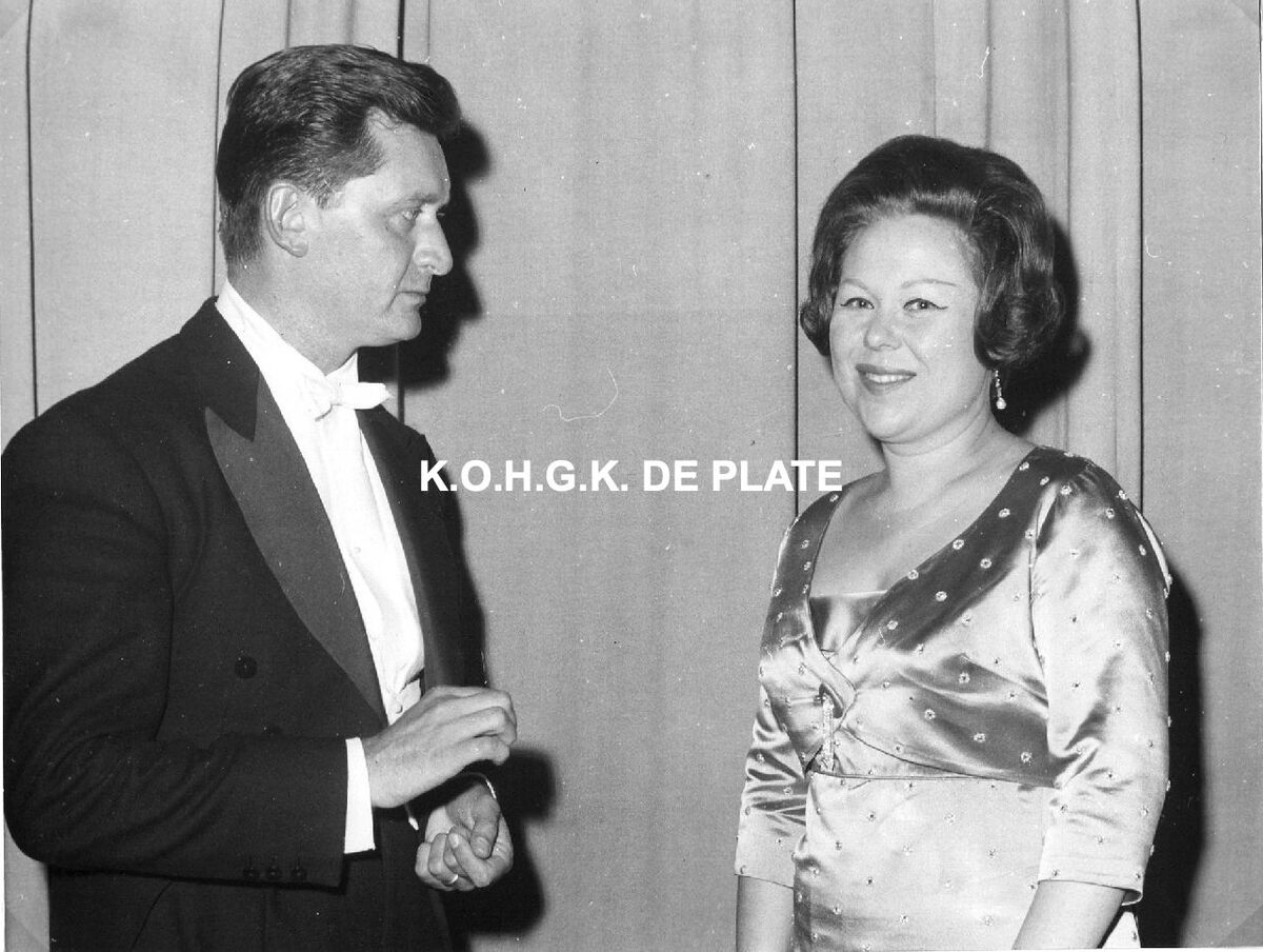 Formaat : 18 x 24 cm. - Dirigent Gérard Devos in het gezelschap van de Italiaanse operazangeres Renata Scotto. Concert in het kader van het Festival van Vlaanderen.