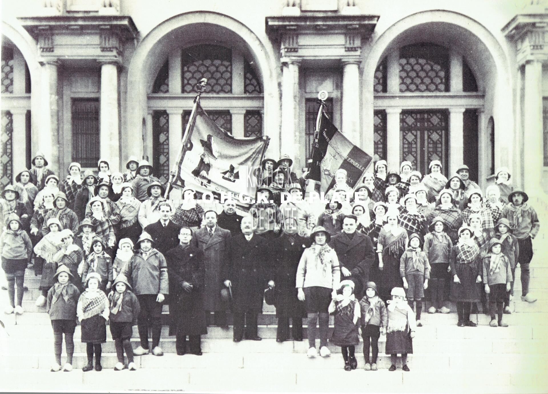 Formaat : 29 x 41 cm. Groepsfoto op de trappen van het Thermae Palace.