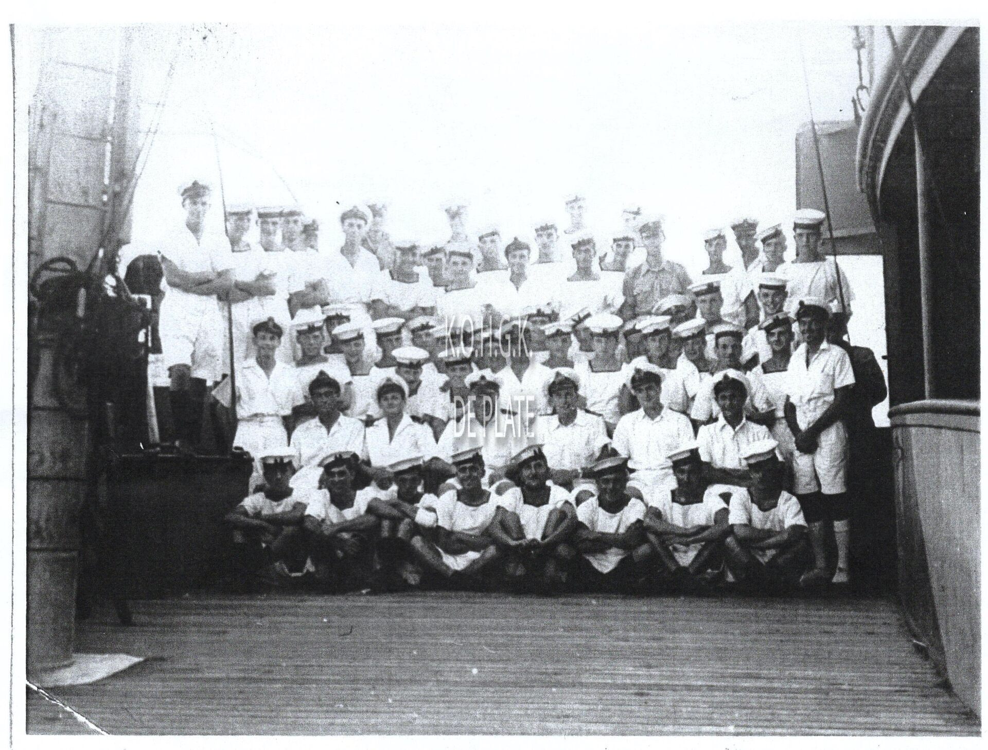 Afdruk. - Formaat : 14 x 19 cm. - Zittend op de eerste rij, vijfde van links de heer Blair