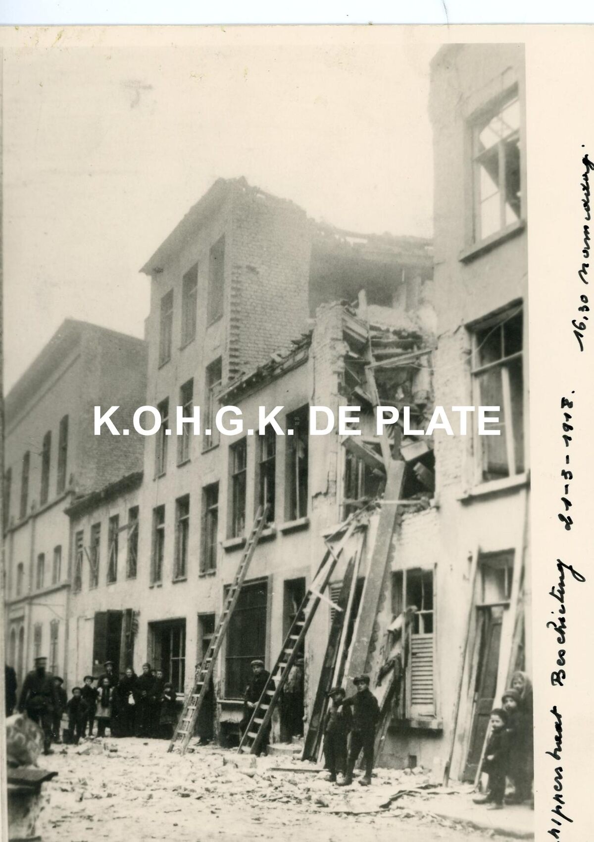 Formaat : 18 x 13 cm. - Ruïne van het huis Schippersstraat 35. na de beschieting van 21-03-1918 om 16.30 uur