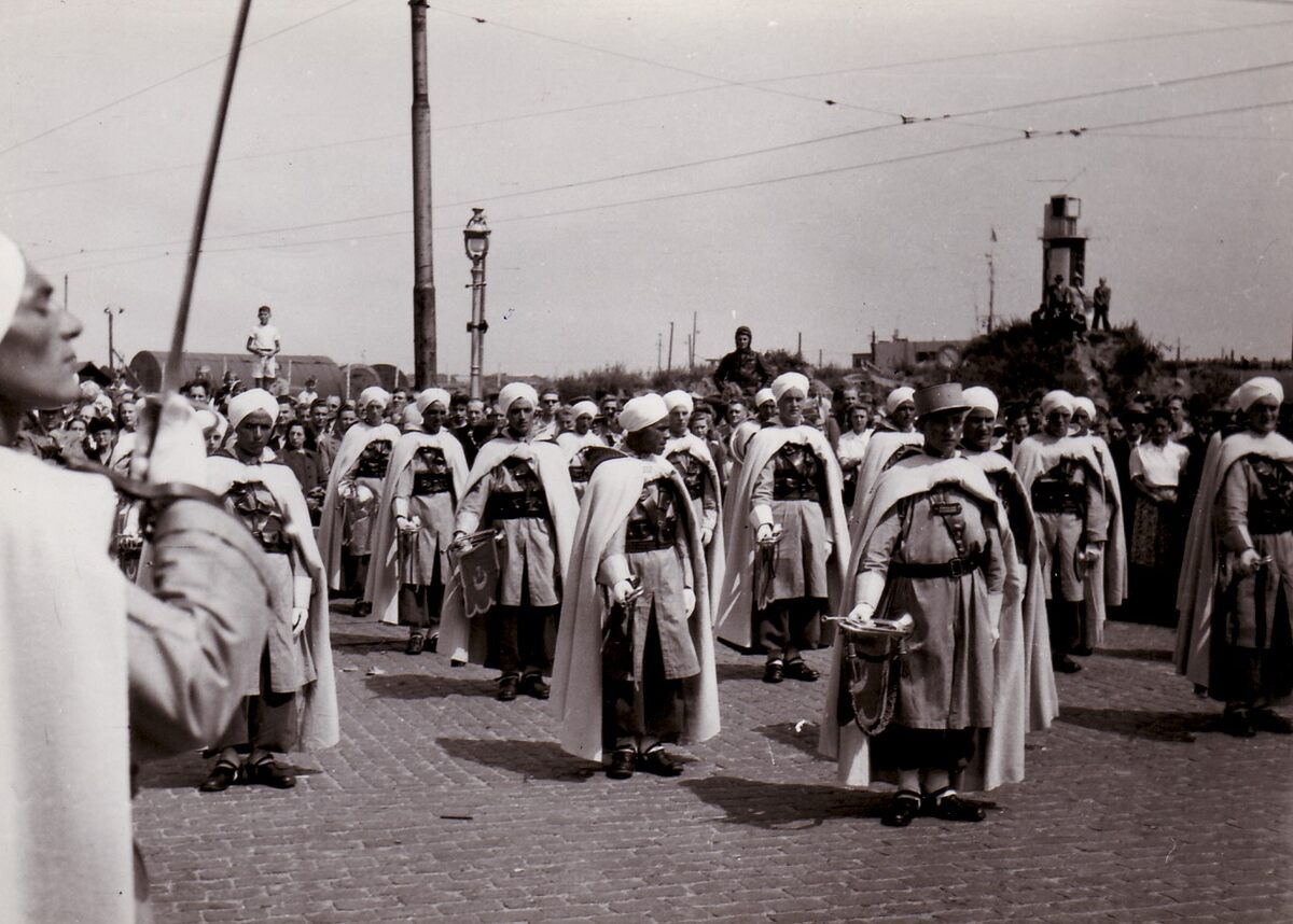 Het muziekkorps van de spahis op de Visserskaai.