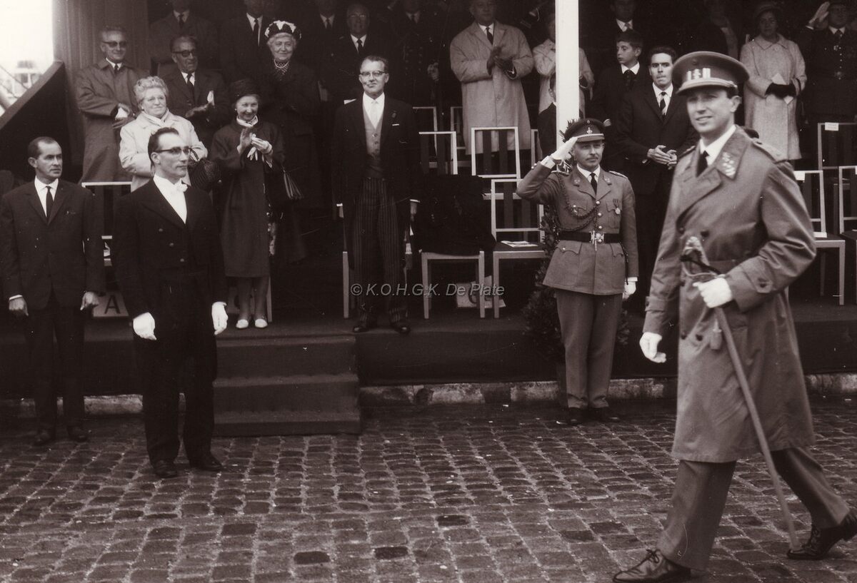 Formaat : 13 x 18 cm. - Koning Boudewijn passeert de eretribune op de Visserskaai tijdens de feestelijkheden van 21/07/1966 te Oostende.