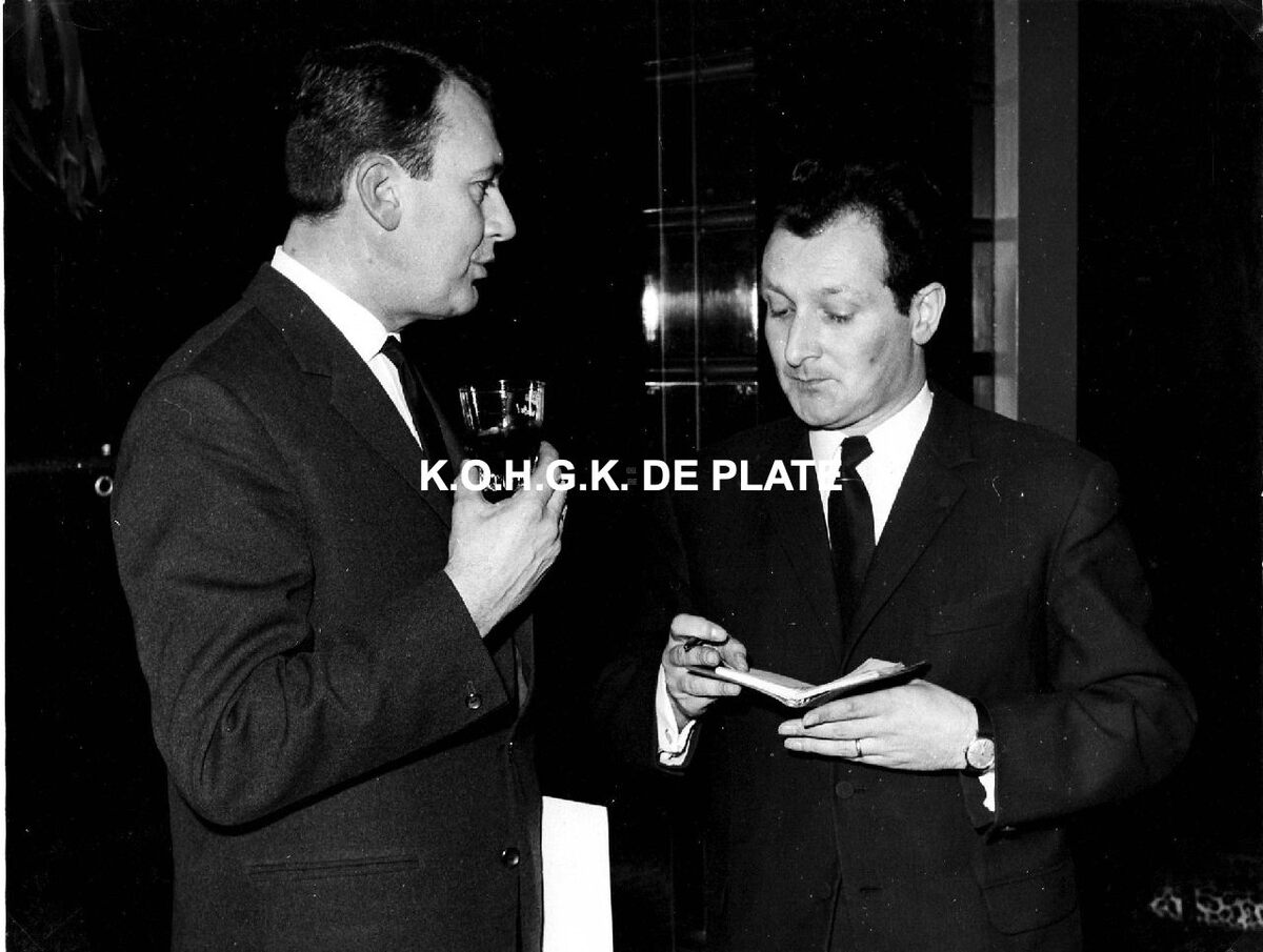 Formaat : 18 x 24 cm. - Promotie voor het "Bal du Rat Mort". Thema : Cleopatra in Roma. Willy Bosschem (rechts) in gesprek met weerman Arman Pien.