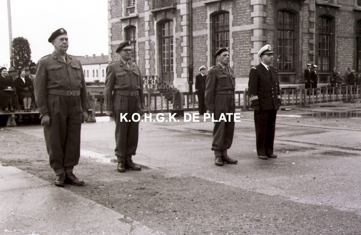 "Links, André Nolf, reservekapitein-commandant. Hij was onderwijzer in de stedelijke basisschool Ernest Van Glabbeke. Ik zat bij hem in de klas" (Georges Van Duyvenboden)
