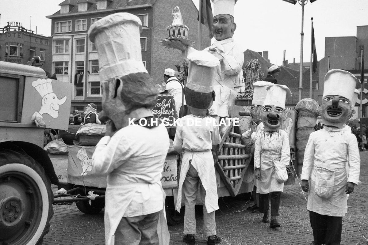 Negatief : 4 x 6,5 cm. - Hier met hun praalwagen op het Wapenplein