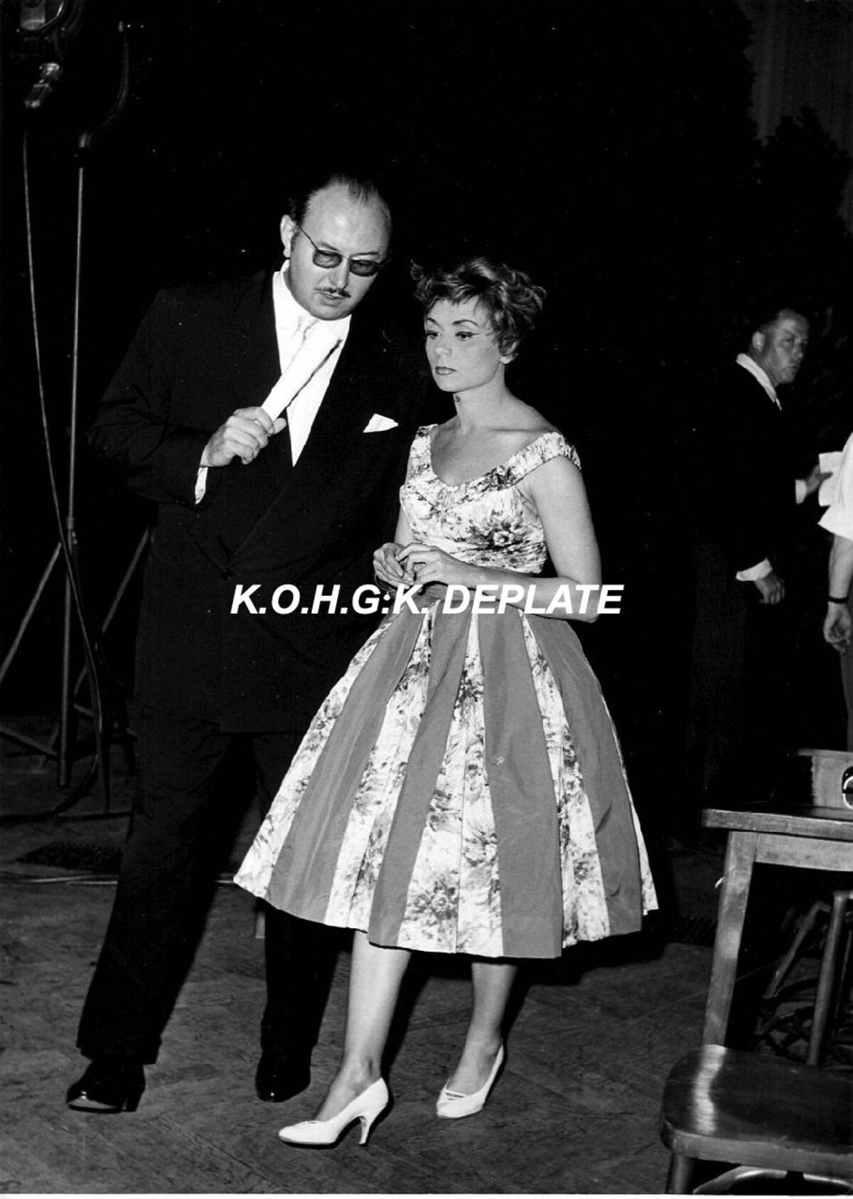 Formaat : 18 x 13 cm. - Annie Cordy in gesprek met Roger De Ramée, directeur van het Kursaal