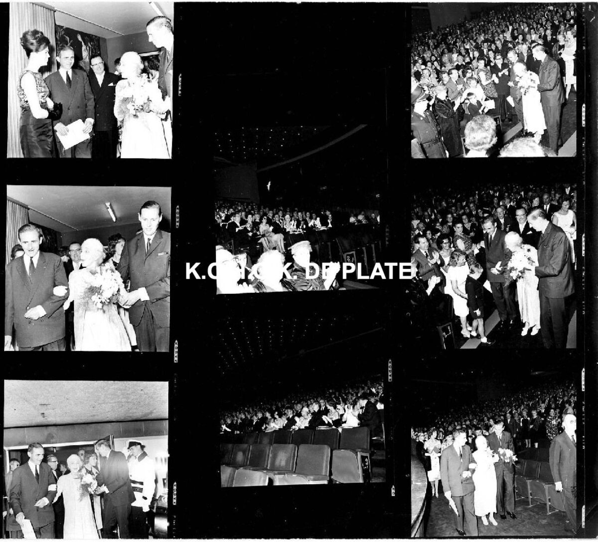 Formaat : 12 x 12 cm. - 9 foto's 4 x 4 cm. - Koningin Elisabeth woonde het concert bij van het Belgisch Kamerorkest.