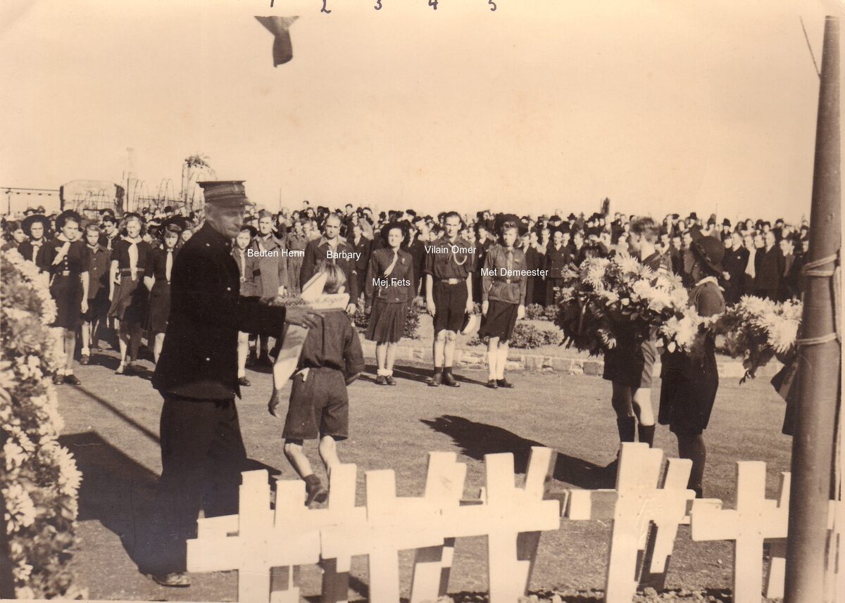 Formaat : 18 x 13 cm. - Herdenking van de gesneuvelde politieke gevangenen op de begraafplaats aan de Stuiverstraat. Ingericht door de Nationale Federatie der Politieke Gevangenen en Gelijkgestelden. Sectie Ernest Feys. Zie ook inventarisnummer 2013/1461.