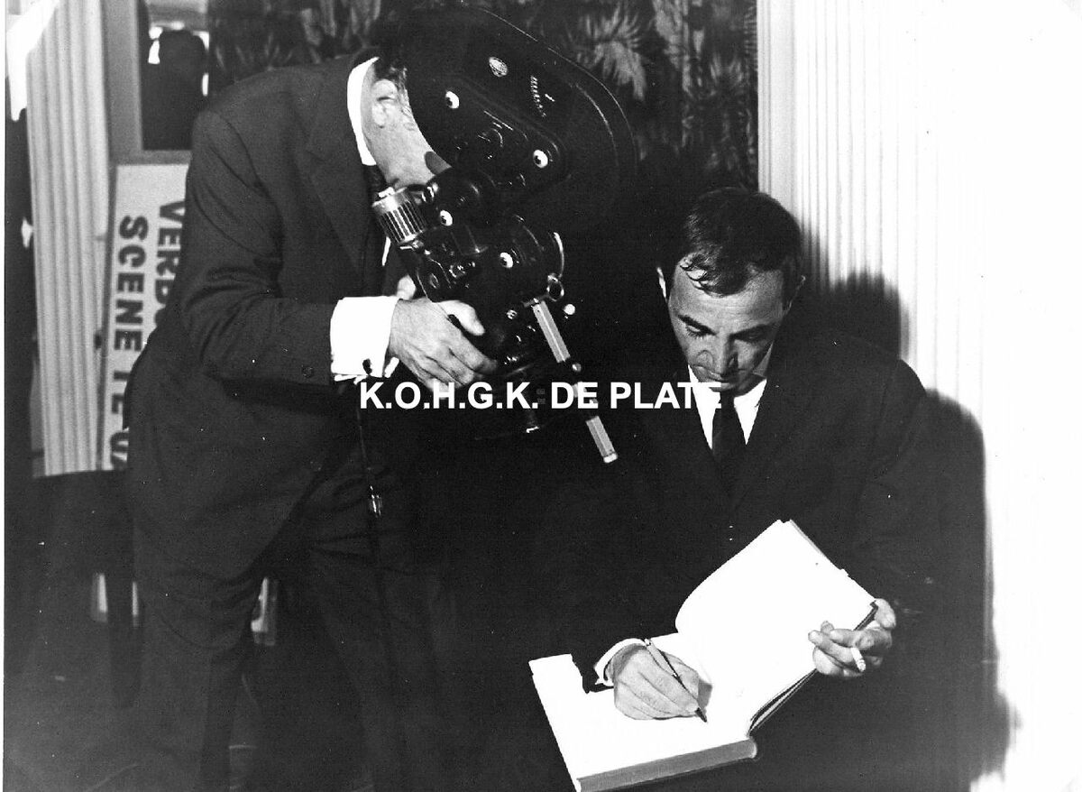 Formaat : 17 x 23 cm. - Charles Aznavour signeert en wordt gefilmd.