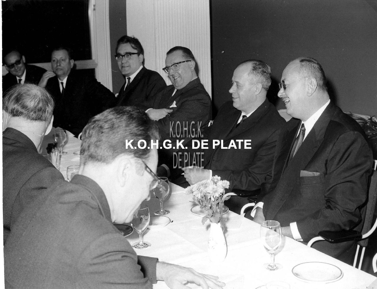 Formaat : 18 x 24 cm. - Rechts, Roger De Ramée, directeur van de Kursaal, de heer Roudnev en naast hem schepen John Lauwereins.