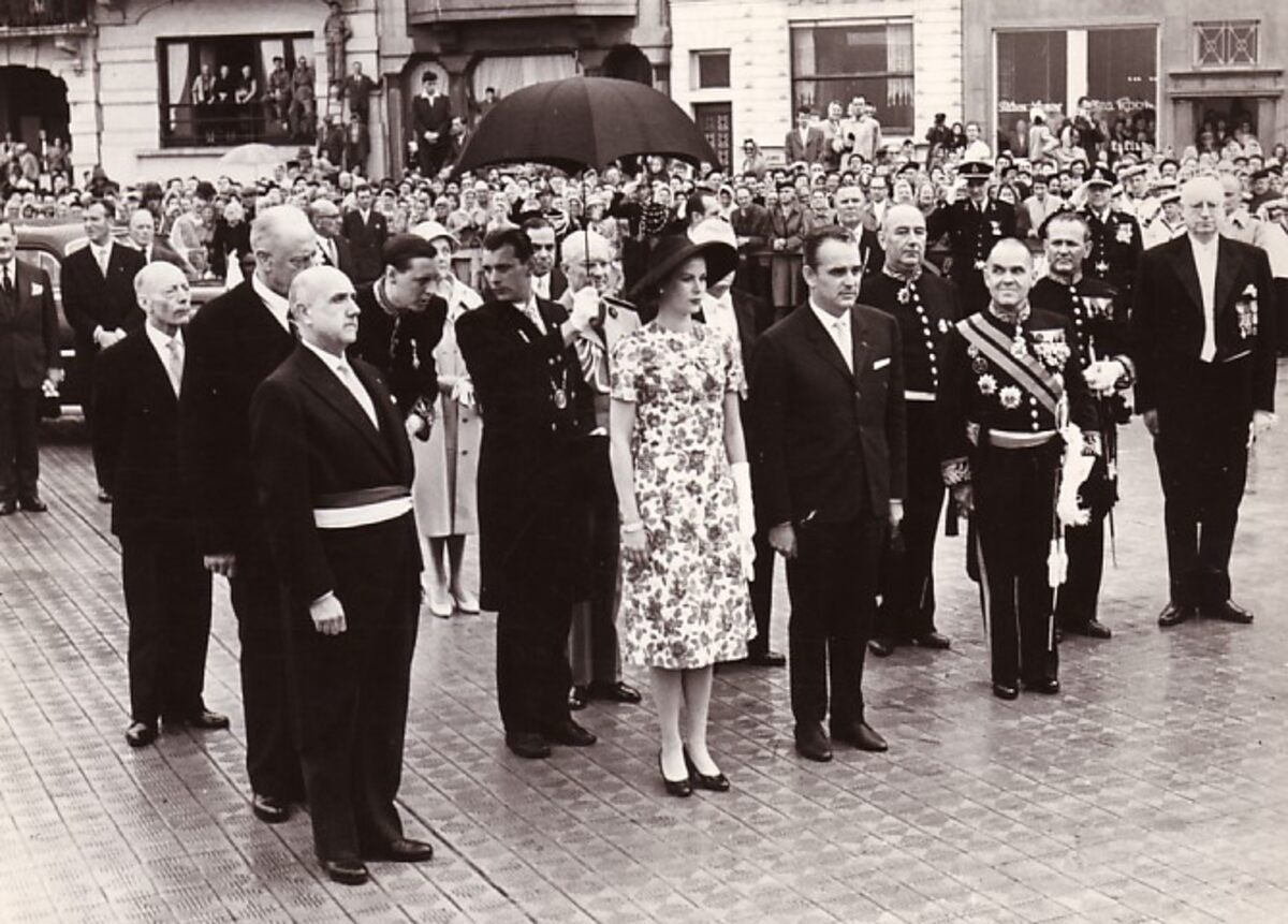 Foto 18 x 13. Prins Rainier en Prinses Grace van Monaco op de Albert I wandeling.