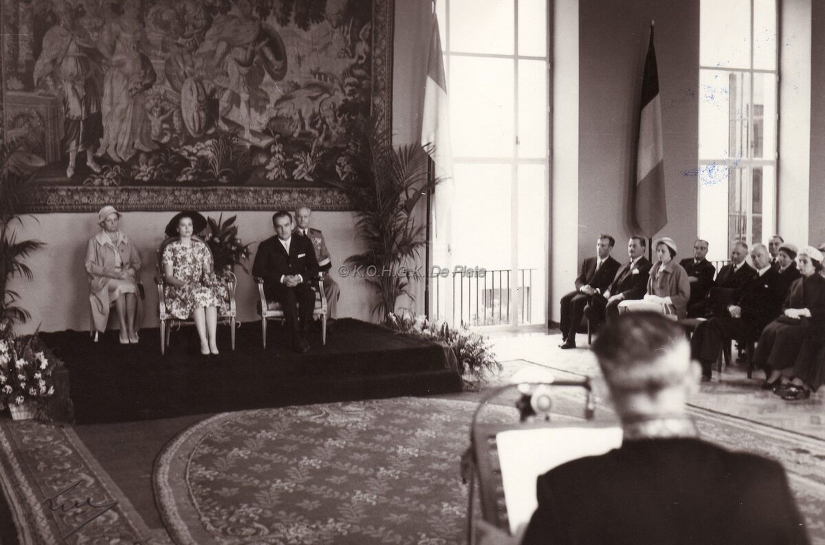 Toespraak door burgemeester Adolf VAN GLABBEKE tijdens de ontvangst van de prins en prinses van Monaco in het Feestpaleis bij de jumelage Oostende-Monaco.