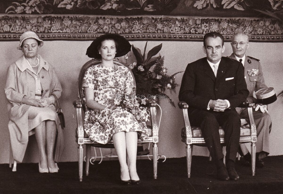 Prins Rainier en Prinses Grace van Monaco tijdens hun ontvangst op het Oostends Feestpaleis bij de jumelage tussen beide steden.