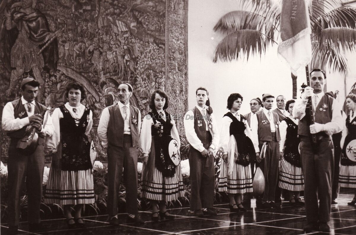 Een monegaskische folkloristische groep treed op tijdens een ontvangst op het stedelijk feestpaleis bij de jumelage Oostende-Monaco.