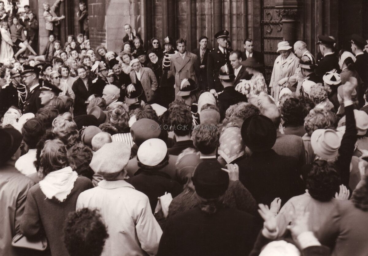 De prins en prinses van Monaco verlaten de Sint Petrus en Pauluskerk tijdens de jumelage Oostende-Monaco.
