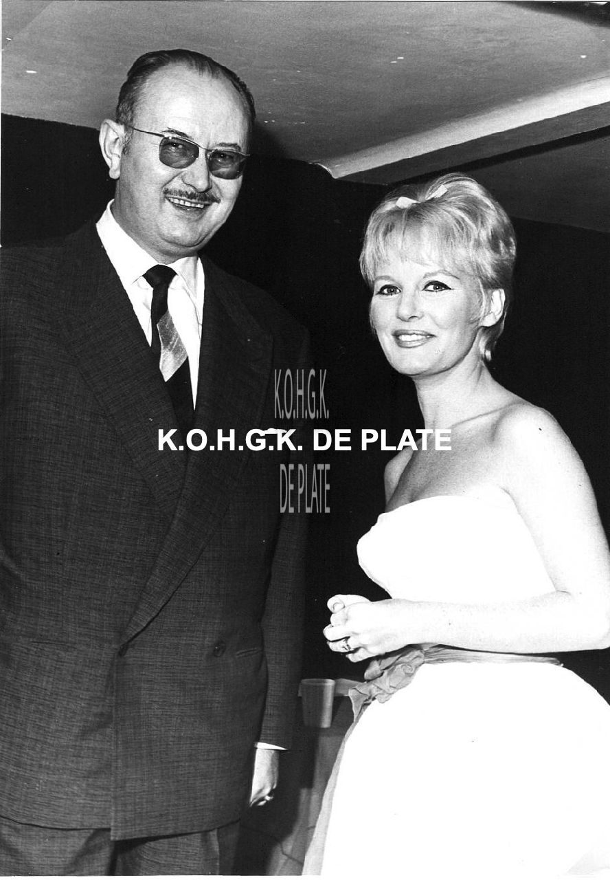 Formaat : 17 x 12 cm. - Petula Clark in het gezelschap van Roger De Ramée, directeur van de Kursaal.