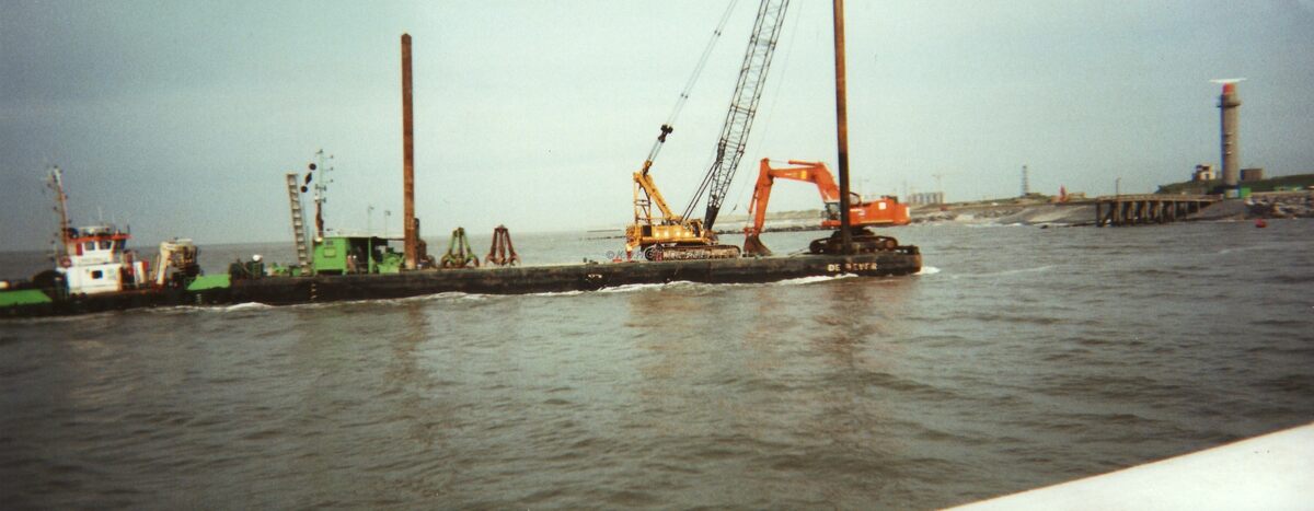 Formaat : 25 x 10 cm. - Rechts, de radartoren op de oosteroever