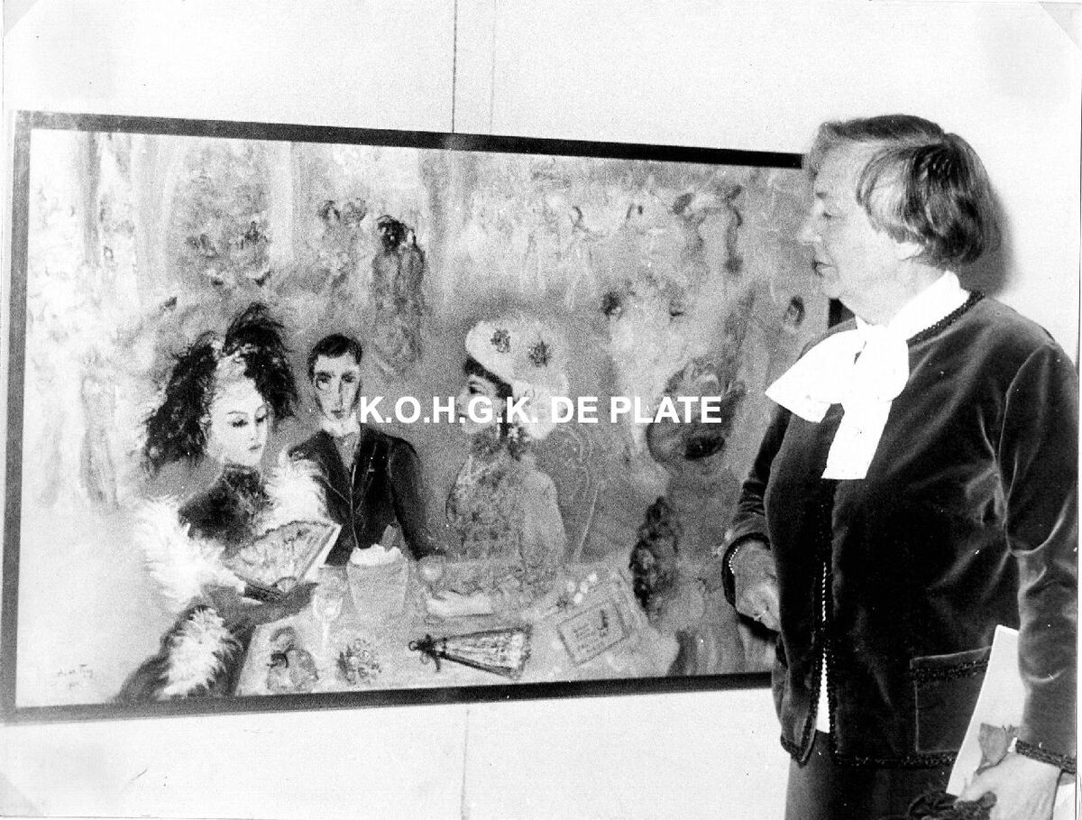 Formaat : 18 x 24 cm. - De kunstenares tijdens de vernissage op 26/06/1965. - Catalogus van de tentoonstelling : Plate Bib A227