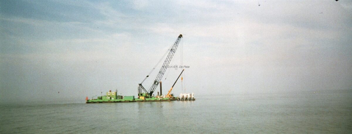 Formaat : 25 x 10 cm - Het laatste stuk van het ooststaketsel wordt door een werkboot weggenomen