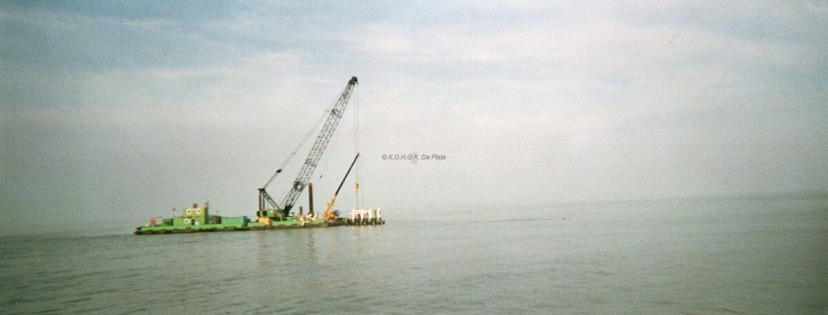 Formaat : 25 x 10 cm. - Het laatste stuk van het ooststaketsel wordt door een werkboot weggenomen