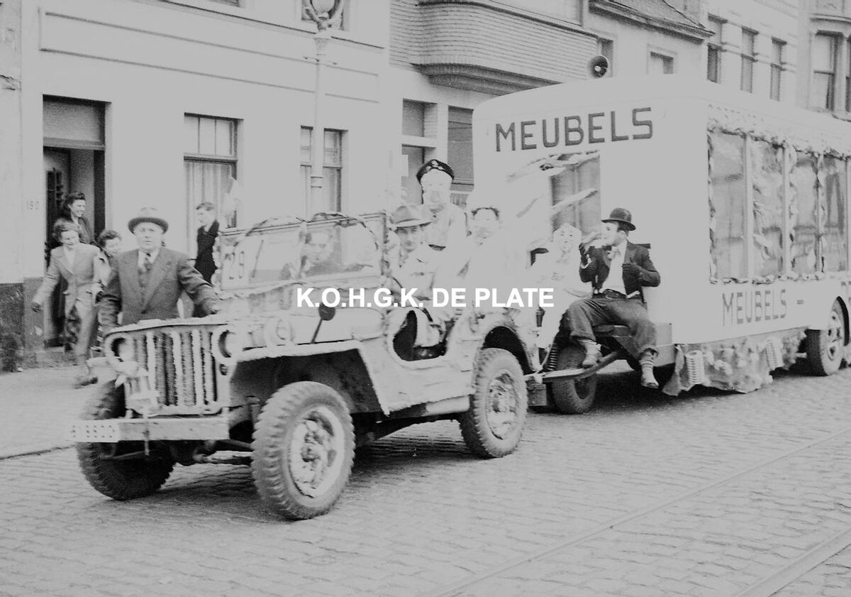 Negatief : 4 x 6,5 cm. - Publiciteitswagen van Meubels Primus op de Torhoutsesteenweg
