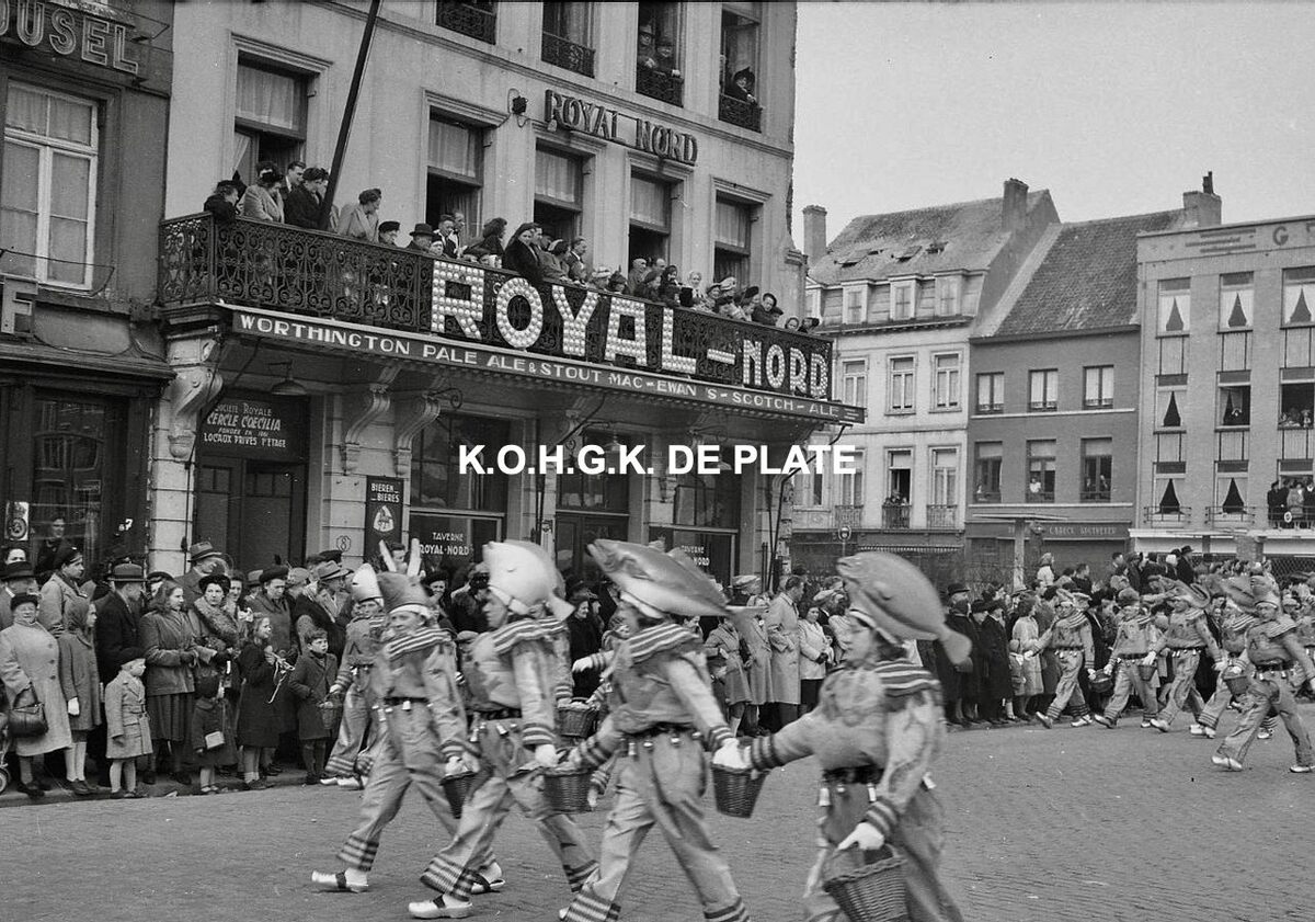 Negatief : 4 x 6,5 cm. - Hier op het Wapenplein nabij de "Royal Nord". Hier was ook de "Cercle Coecilia" gevestigd
