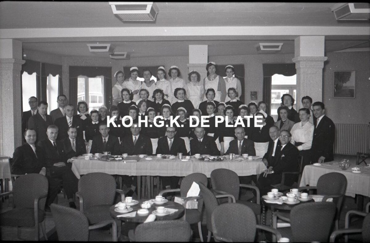 Foto : Opdiensters en hulpkokkinnen ontvangen hun diploma na het volgen van een herscholingscursus. Hotel Wellington. 27/03/1958