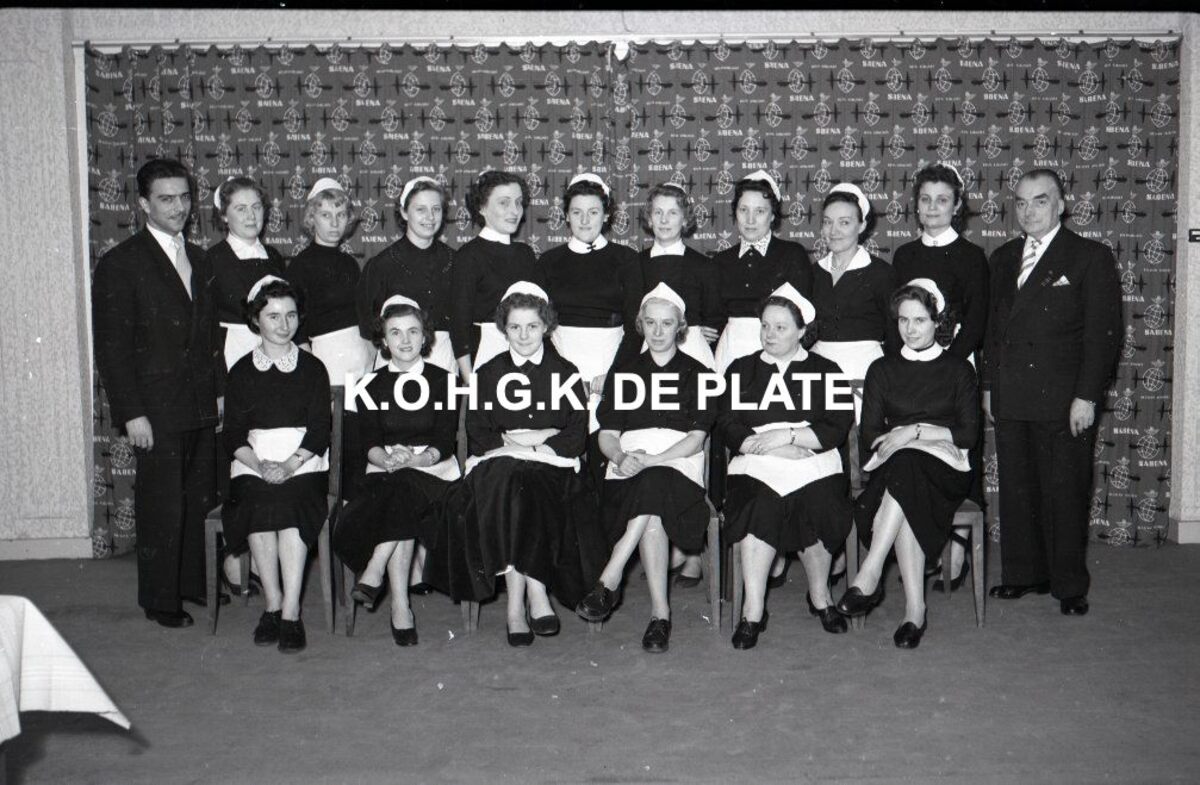 Foto : Opdiensters en hulpkokkinnen ontvangen hun diploma na het volgen van een herscholingscursus. Hotel Wellington. 27/03/1958
