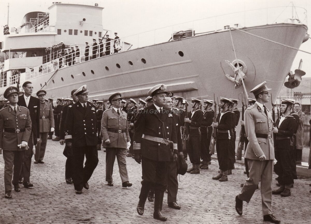 Formaat : 13 x 18 cm. - Het troepentransportschip de "Kamina" dat onze troepen uit Congo terugbracht, ligt aangemeerd in het Houtdok. Koning Boudewijn was er om hen te verwelkomen.