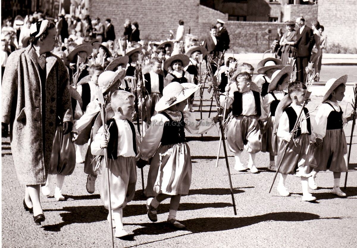 Een groep kleuters stapt mee op in de jaarlijkse Zeewijding.