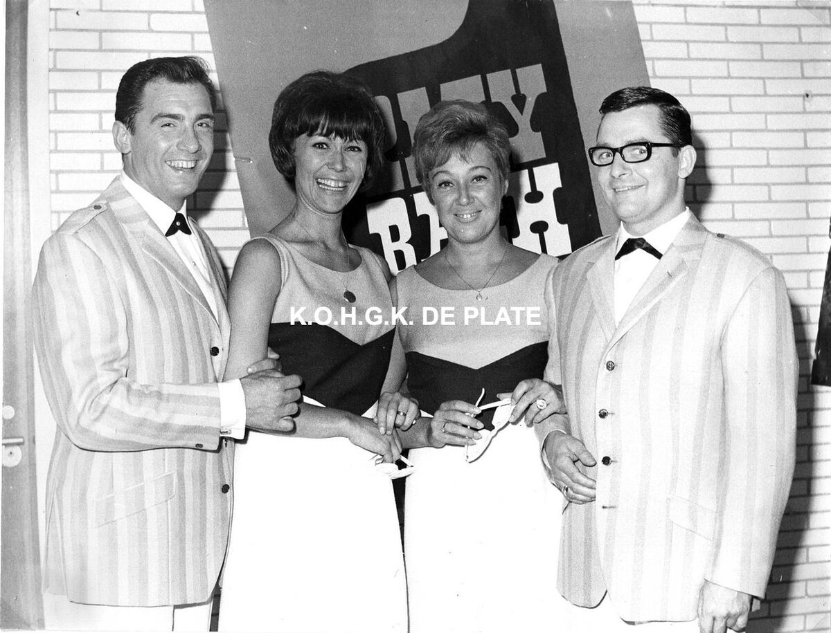 Formaat : 18 x 24 cm. - Van links naar rechts, Maurice Dean, Lily Castel, Jo Leemans en Freddy Sunder