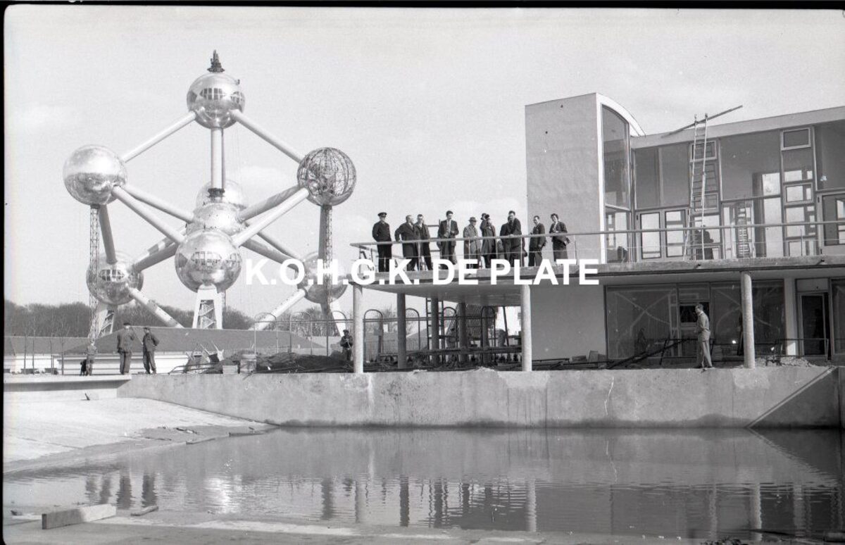 Negatief : 6 x 9 cm. - Het Oostends paviljoen en het Atomium in opbouw